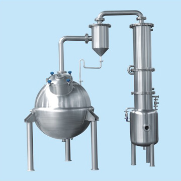 球形浓缩罐主要由浓缩罐主体、冷凝器、汽液分离器、受液桶四个部分组成,可用于制药、食品、化工等行业对料液的浓缩、蒸馏及有机溶媒的回收等工艺。由于采用减压浓缩,故浓缩时间短,且不会破坏热敏性物料的有效成份。